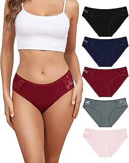 Levao 5 Pack Cotton Underwear Women Lace Ladies Knickers Sexy High Leg Hipster B..