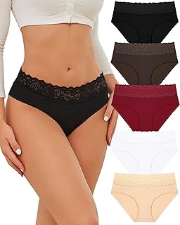 Levao 5 Pack Cotton Underwear Women Lace Ladies Knickers Sexy High Leg Hipster B..